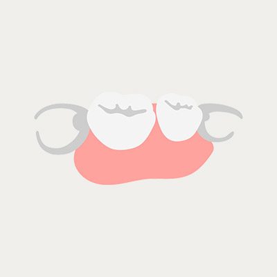 失ってしまった本数が1本、または周りの歯が残っている場合に使用する入れ歯です。